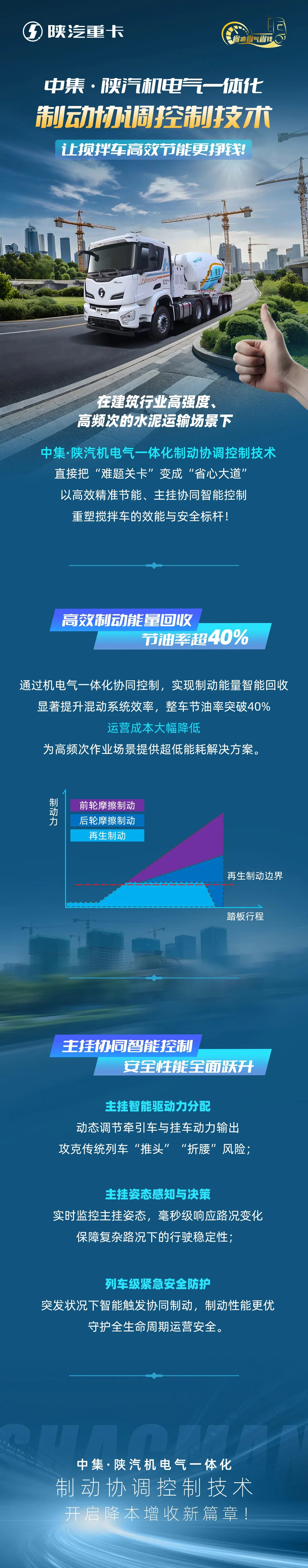 中集•陕汽机电气一体化制动协调控制技术,让搅拌车高效节能更挣钱!